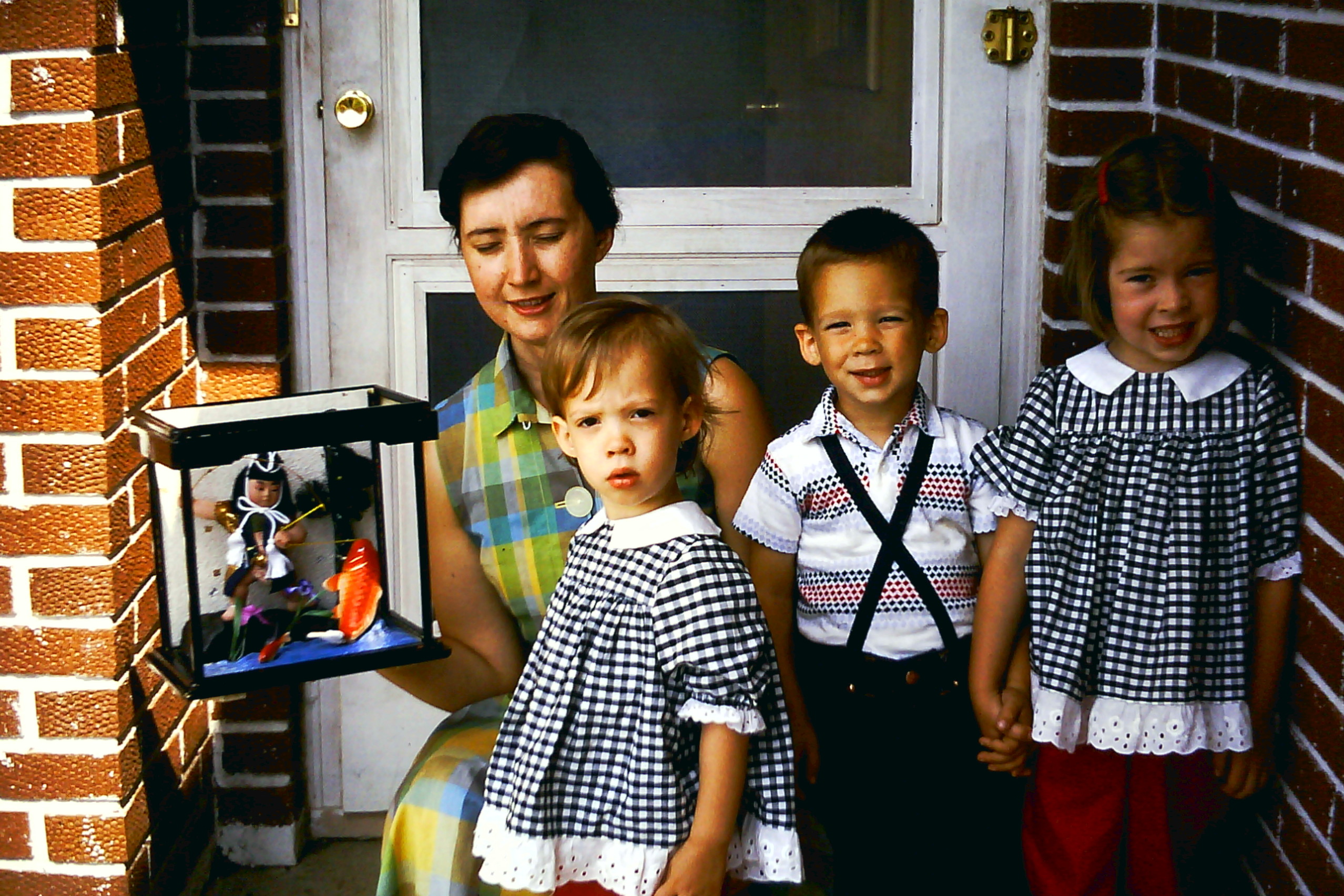 Jill & Matt helping Grandma in Decatur 1961. Dad put in the kitchen |
